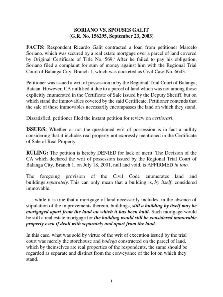 Soriano v galit gr 156295 lawphil. September 23 2003 MARCELO R. V lepublit of tbe bilippine upreme Qtourt if-llanila FIRST DIVISION FAR EAST BANK AND TRUST COMPANY Petitioner GR. The writ of possession was.